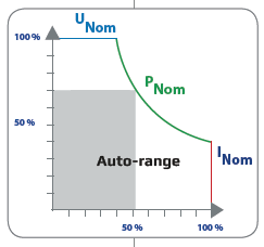 本系列所有型號的輸出功率都可靈活調(diào)整。可在較低電流時輸出較高電壓,或在低電壓時輸出較高電流,但總是維持在最大額定功率范圍內(nèi)。它們的設(shè)定功率都可調(diào),因此僅用一臺產(chǎn)品就能覆蓋廣泛的應(yīng)用。